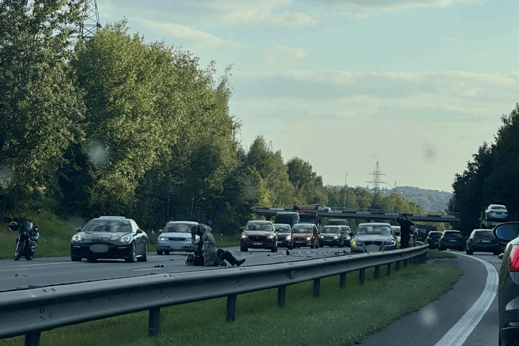 O baikeris uzmigo, kad nuvaziavo nuo greitkelio?